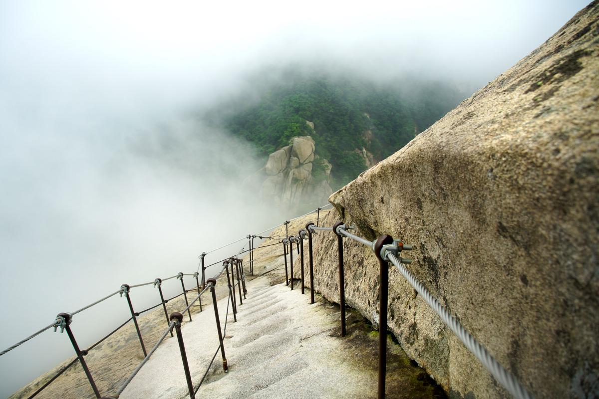 Le mont Bukhansan surplombe le nord de Seoul, à 836 m. L'occasion d'une randonnée en plein été brumeux, au coeur du Parc National, le plus parcouru de Corée.